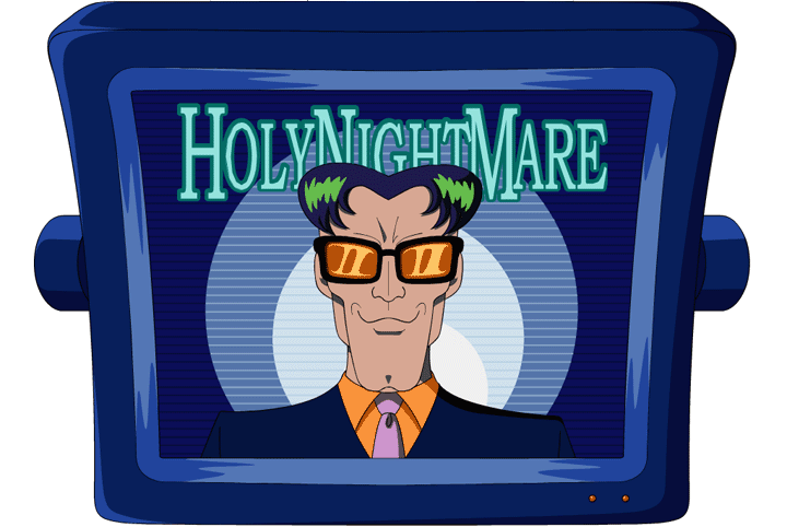 Customer Service. This is a mysterious human who works for a powerful evil entity. He’s always seen from the waist up, on screens in